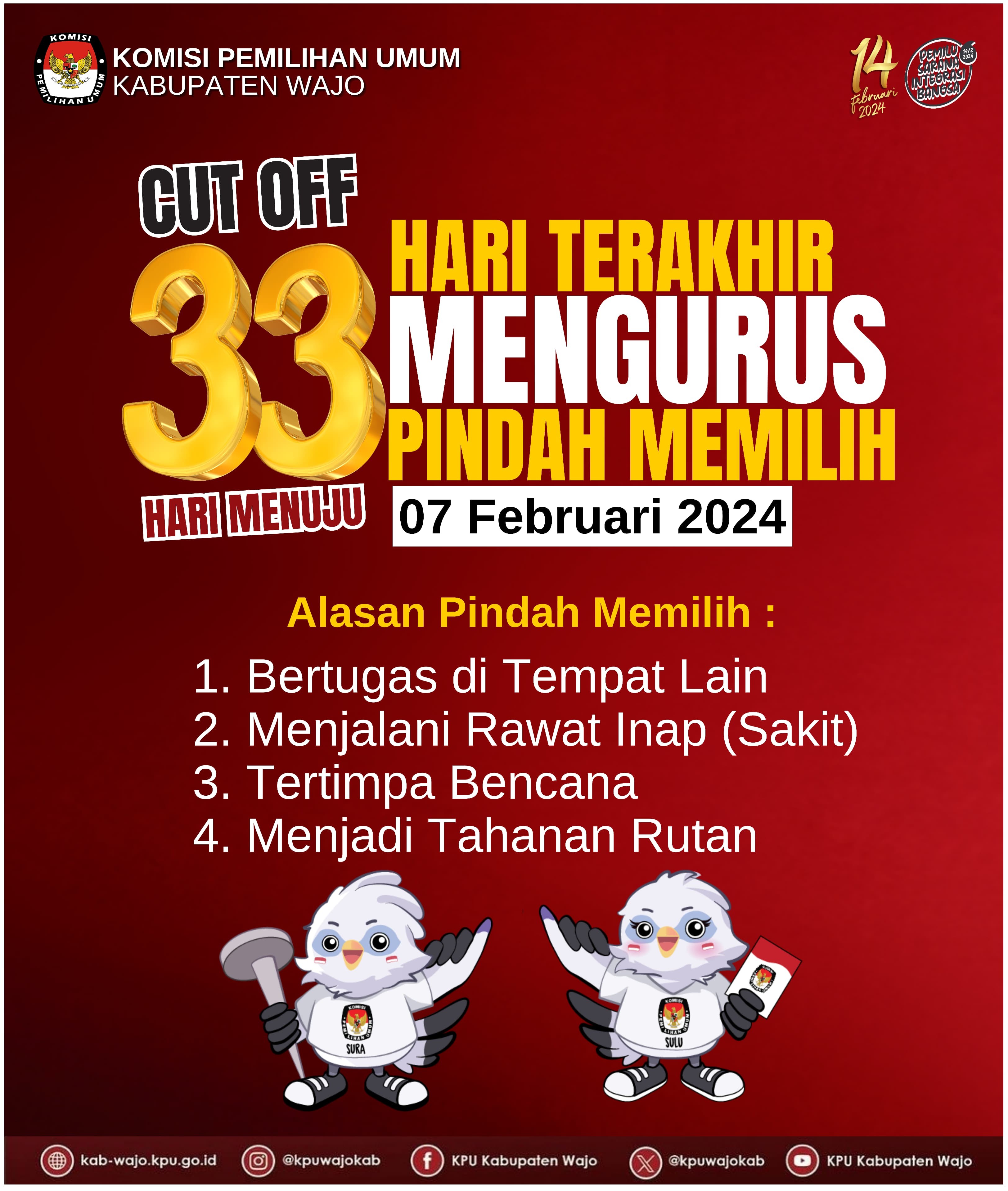 Inilah 4 (empat) alasan pindah memilih dengan batas waktu 33 hari menuju hari pemungutan suara 14 Februari 2024: