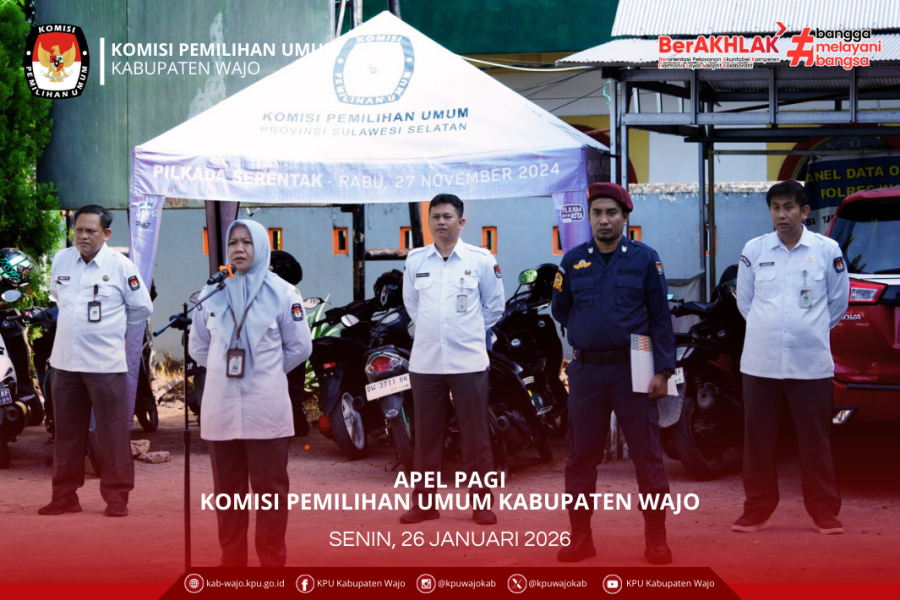 KPU Kabupaten Wajo melaksanakan Apel Pagi, Senin (26/01/2026) di Halaman Kantor KPU Kabupaten Wajo.
