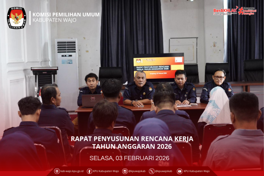 Sengkang - Komisi Pemilihan Umum Kabupaten Wajo menggelar rapat penyusunan dan pembahasan Rencana Kerja Tahun 2026 sebagai upaya memperkuat kinerja lembaga dan meningkatkan kualitas tata kelola organisasi.