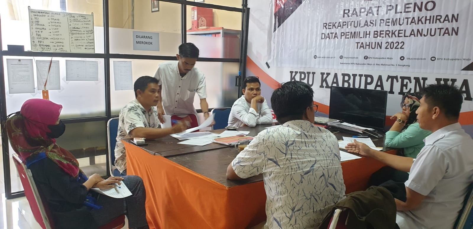 Rapat Pleno penetapan PDPB kali ini merupakan pleno kedelapan pada tahun 2022, sebagai bentuk kelanjutan Program Pemutakhiran Data Pemilih Berkelanjutan yang dilaksanakan secara internal oleh Komisi Pemilihan Umum Kabupaten Wajo dan dihadiri oleh Ketua dan Anggota KPU Kabupaten Wajo, serta Kasubbag Perencanaan, Data dan Informasi KPU Kabupaten Wajo.