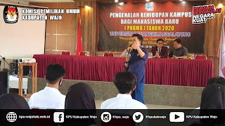 Kali ini KPU Kabupaten Wajo mengisi acara di Aula Kampus Universitas Puangrimaggalatung (Uniprima) Sengkang dalam rangkaian kegiatan Pengenalan Kehidupan Kampus Bagi Mahasiswa Baru (PKKMB) Uniprima. Selasa, 15 September 2020.