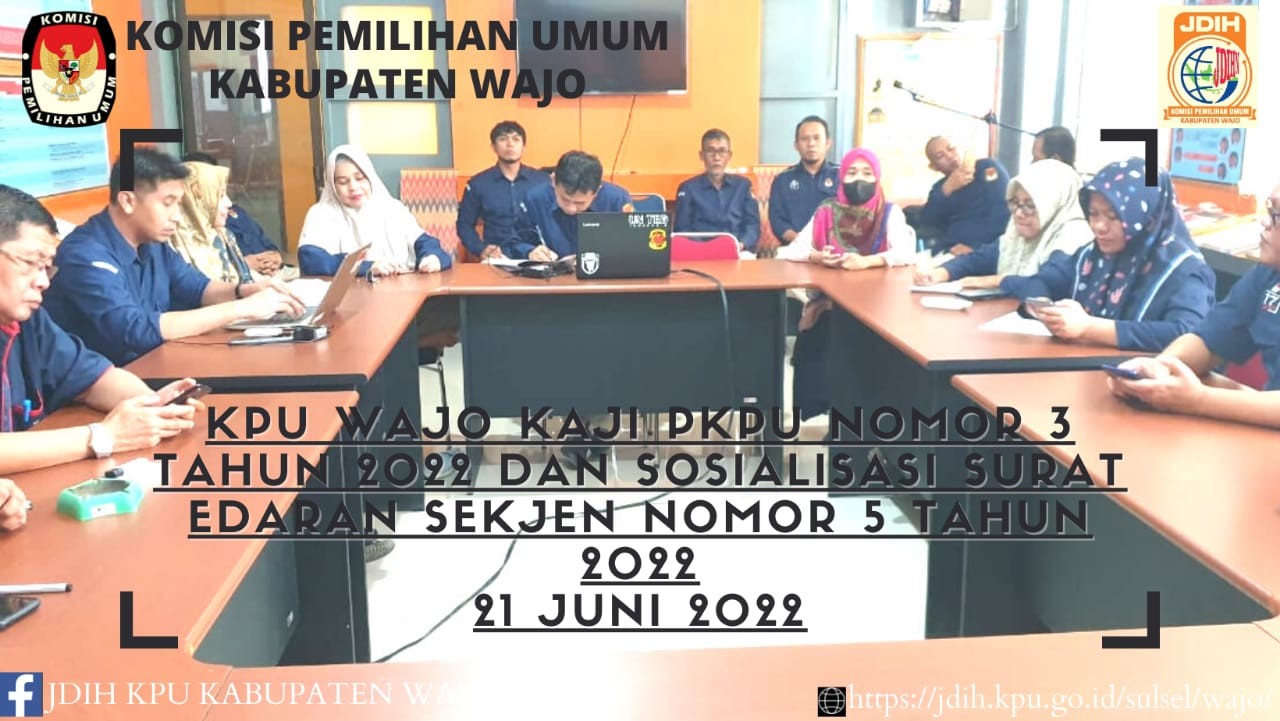 KPU WAJO KAJI PKPU NOMOR 3 TAHUN 2022 DAN SOSIALISASI INTERNAL SURAT EDARAN SEKJEN NOMOR 5 TAHUN 2022