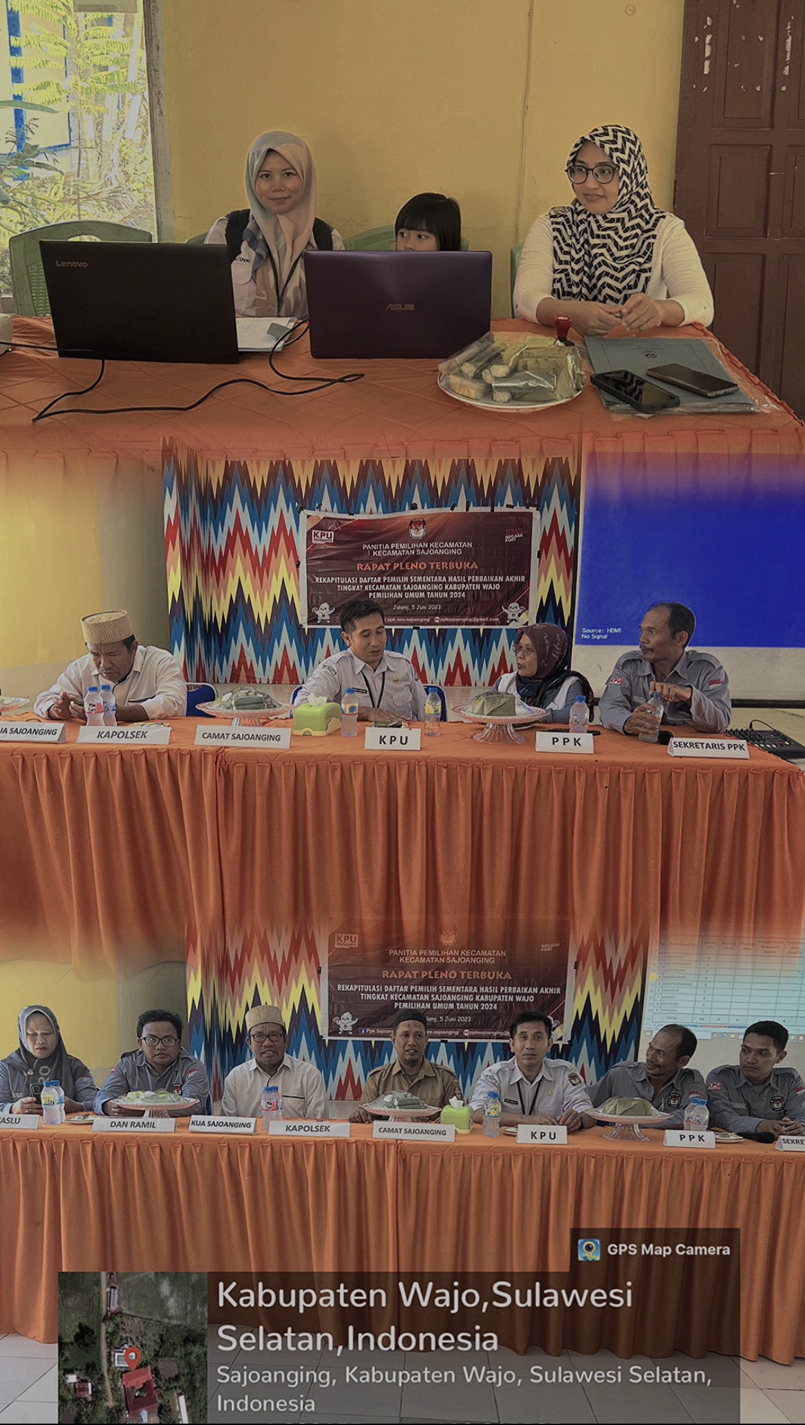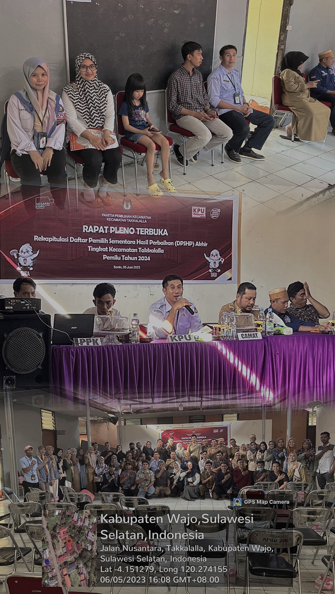 #TemanPemilih, Senin 05 Juni 2023 Kasubbag Perencanaan, Data dan Informasi (Andi Amisar, SH., M.H.) beserta Staff (A. Fitria We Tenri Pada, S.ST dan Suhartin Mustawa, S.Kom) melakukan Monitoring Persiapan dan Rapat Pleno Terbuka DPSHP Akhir Tingkat Kecamatan di Kecamatan Sabbangparu, Kecamatan Sajoanging dan Kecamatan Takkalalla.