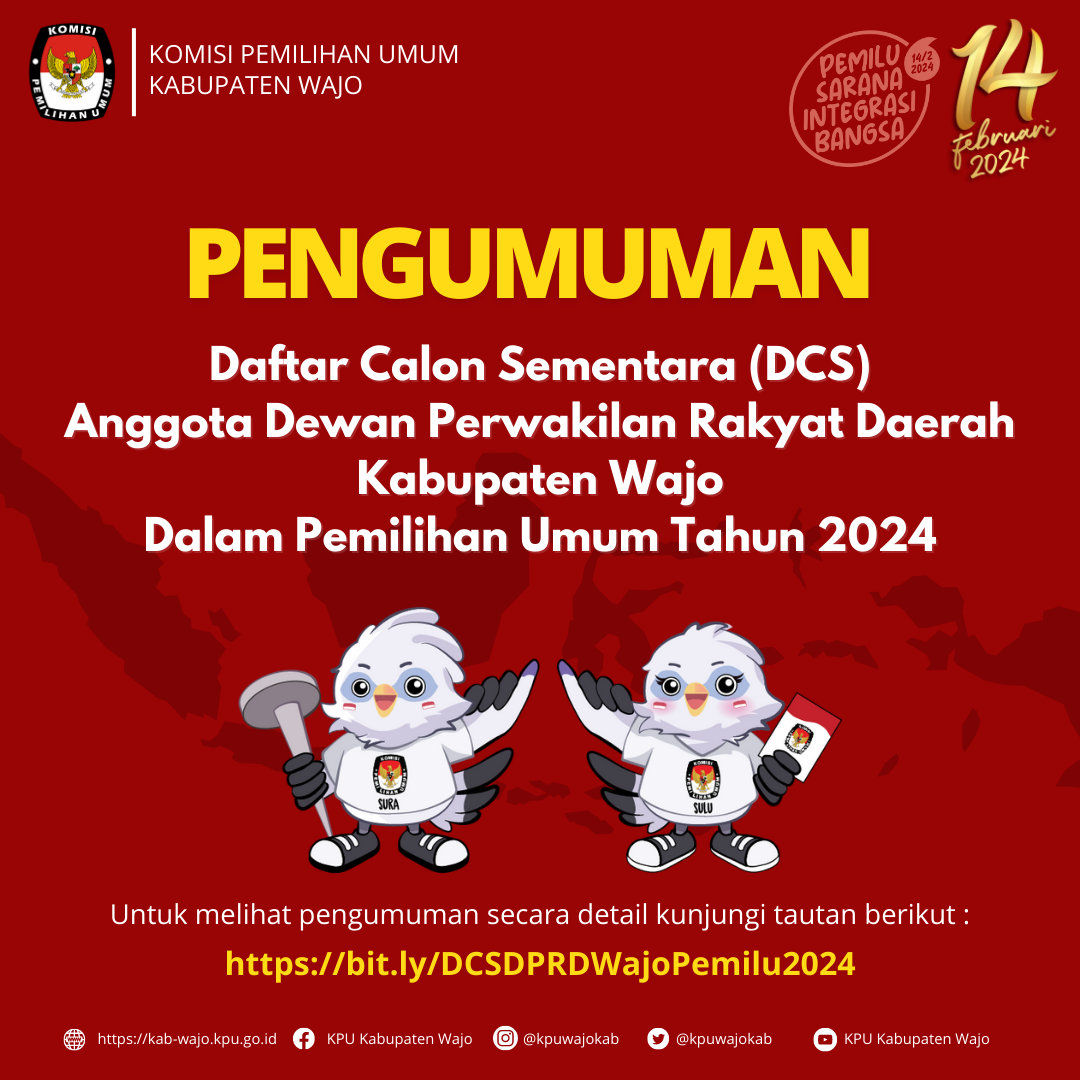 Pengumuman Daftar Calon Sementara (DCS) Anggota Dewan Perwakilan Rakyat Daerah (DPRD) Kabupaten Wajo Dalam Pemilihan Umum Tahun 2024