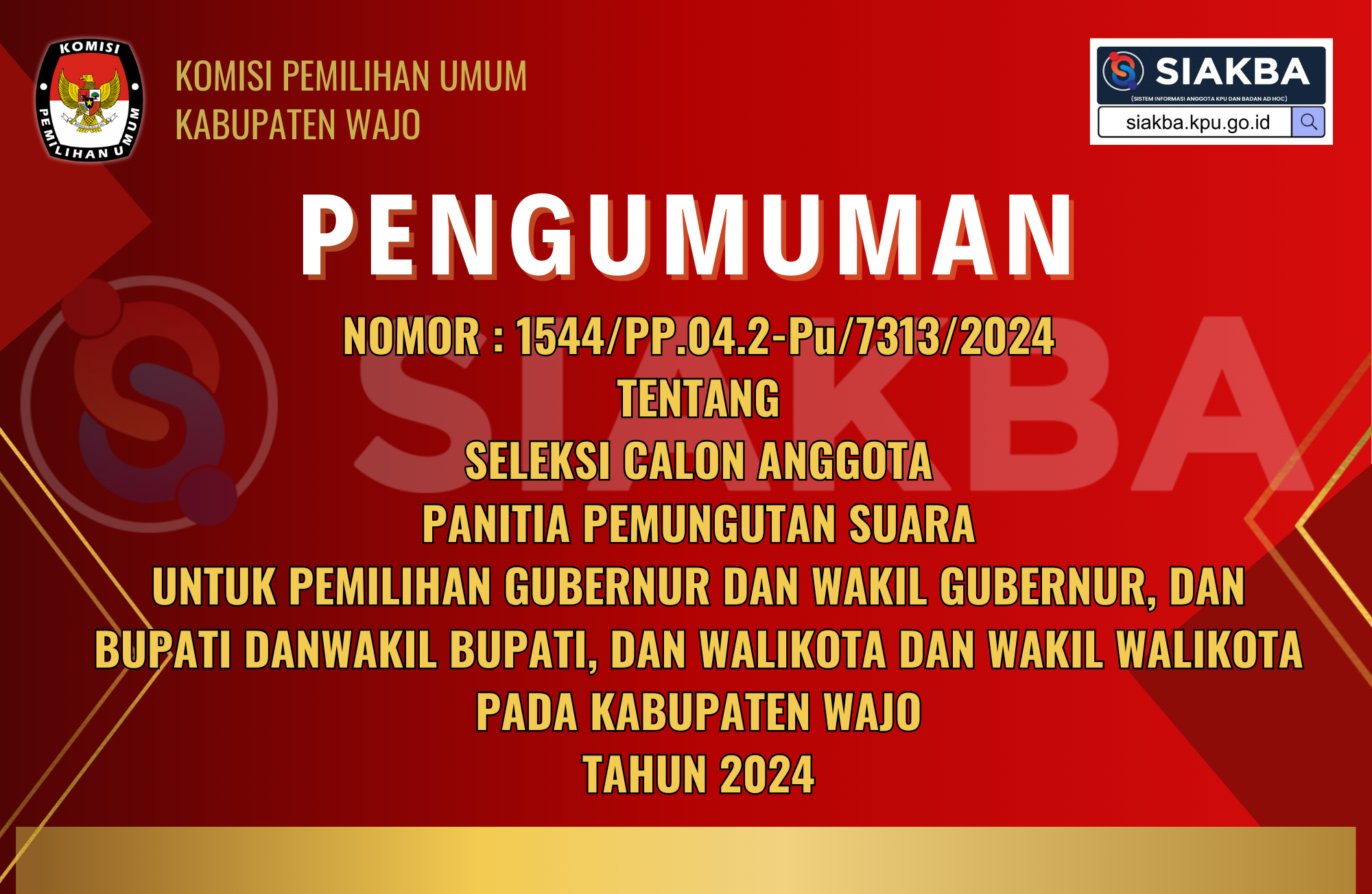 PENGUMUMAN SELEKSI CALON ANGGOTA PANITIA PEMUNGUTAN SUARA UNTUK PEMILIHAN KEPALA DAERAH TAHUN 2024