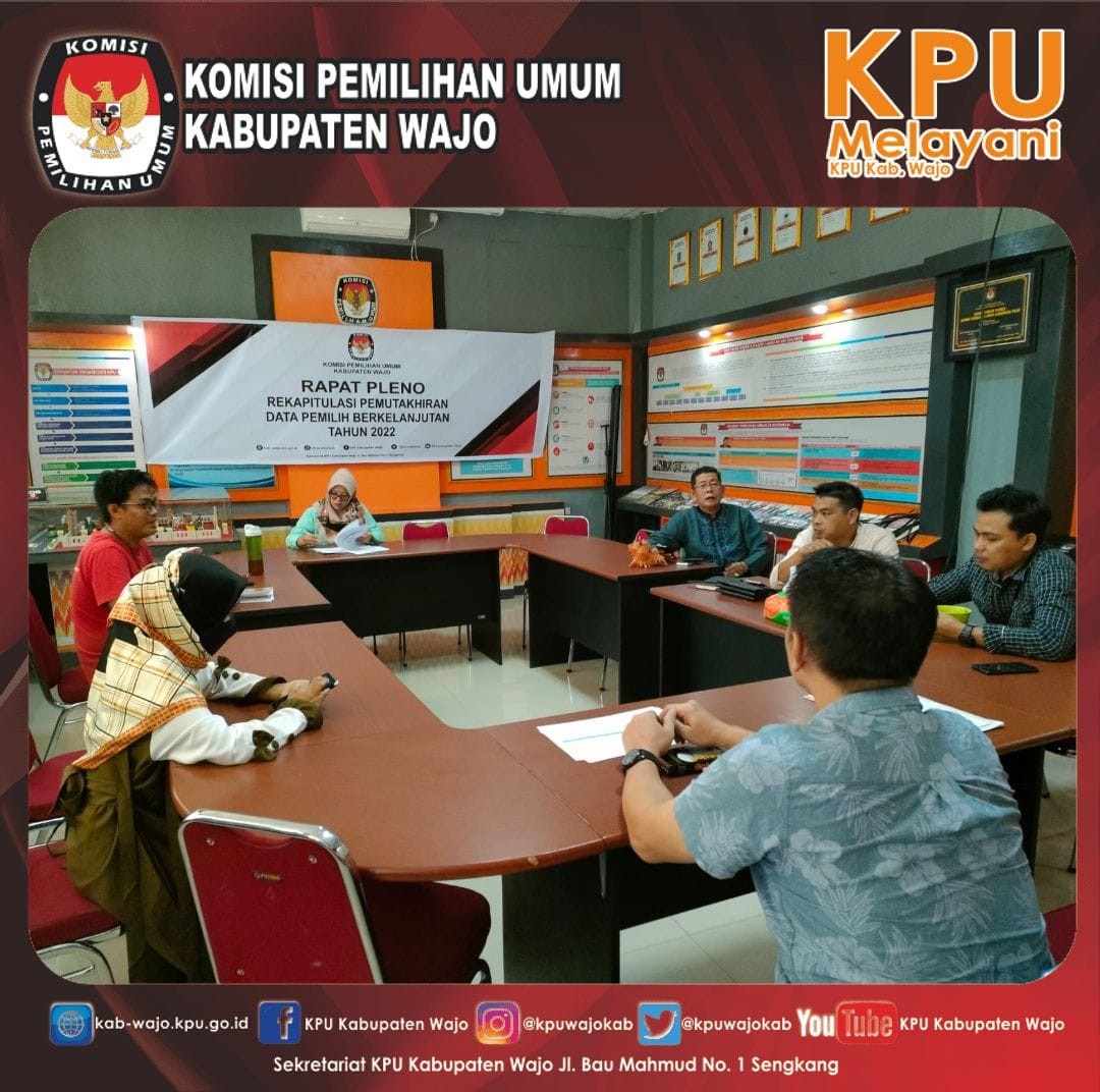 Rapat Pleno penetapan PDPB kali ini merupakan pleno ketiga pada tahun 2022, sebagai bentuk kelanjutan Program Pemutakhiran Data Pemilih Berkelanjutan, yang dilaksanakan secara internal oleh Komisi Pemilihan Umum Kabupaten Wajo dan dihadiri oleh Ketua dan Anggota KPU Kabupaten Wajo, Sekretaris KPU Kab.Wajo dan Kasubbag Program dan Data KPU Kabupaten Wajo.